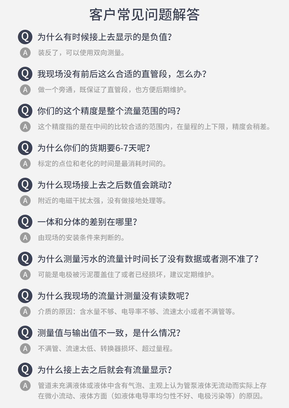 電磁流量計工作原理基于法拉第電磁感應定律。電磁流量計僅適用測量具有導電性的液體或液固兩相流體的瞬時流量,并具有流量累積功能。理論上介質電導率不低于5μS/cm時都可以使用普通型電磁流量計,但是事實證明普通型電磁流量計的可測電導率應該高于理論值一到兩個數量級,至少大于30μS/cm。同時電導率的測量必須以在線測量的電導率為準,離線測量會有空氣的二氧化碳、氮氧化物溶解到介質中導致電導率偏高。
