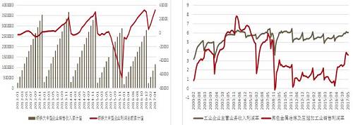 基建定位是用來穩(wěn)定經(jīng)濟(jì),而非成為經(jīng)濟(jì)的新引擎。在GDP任務(wù)達(dá)成壓力下降時,其進(jìn)一步刺激動力下降。房地產(chǎn)行業(yè)集中度近年快速走高,而大型房企普遍采取的采購銷售策略是反周期,這將使得房地產(chǎn)開工投資等數(shù)據(jù)慣性維持時間增加,另一方面土地成交款待大幅走高,將使得行業(yè)整體資金偏緊。房地產(chǎn)開發(fā)資金來源中,來自項目銷售回款占總資金46%,如果加上占用施工單位工程款超過50%,銷售回落對資金有較大影響,此外2015至2016年,上市房企新增債務(wù)高達(dá)8520億元,存量債務(wù)期限一般為2到3年,2018年到期3375億元。但是房地產(chǎn)去庫存從2015年開始,已經(jīng)2年多,目前庫銷比已經(jīng)處于歷史地位,從庫存周期看,目前處于被動去庫存到主動增庫存階段,疊加棚改、租賃住宅將促使房地產(chǎn)需求仍然維持正增長。從PMI持續(xù)處于榮枯線上看,整體工業(yè)需求仍然平穩(wěn)增長。