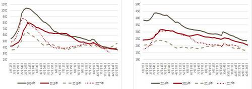 2017年庫存處于被動去庫存到主動增庫存階段,但11月超預(yù)期的需求使得全年主動增庫存,再度轉(zhuǎn)為被動去庫存,2018年有望轉(zhuǎn)為主動增庫存。