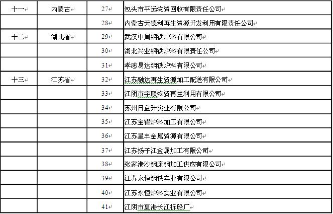 首批廢鋼準入的鋼鐵企業(yè)名單