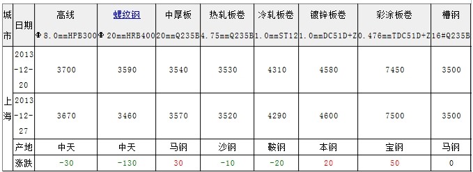 上海鋼市12月20-27日“一周評(píng)述”