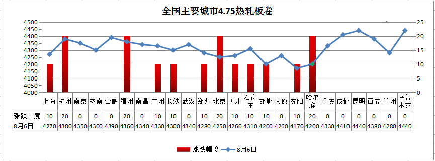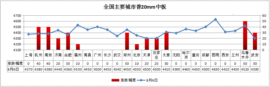中厚板:今日國內中厚板市場價格小幅上漲,全國23個主要城市20mm中厚板均價4420元/噸,較上一交易日上漲14元/噸。